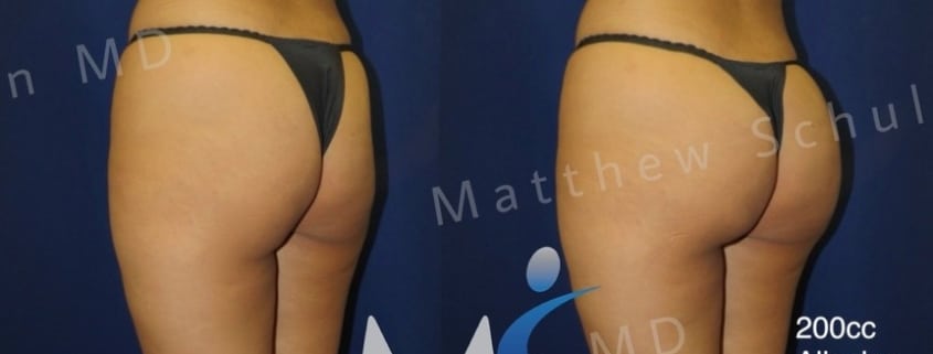 This 30 year old woman desired buttock augmentation but did not want to undergo liposuction to harvest her own fat, so a surgical Brazilian Butt Lift (BBL) was not an option. Instead, she had 200cc of alloclae human donor fat injected into her buttocks using only local anesthesia. She had an immediate recovery and her results at 6 months look amazing. Since the alloclae becomes her own fat, she can expect her results to last as long as she does.
